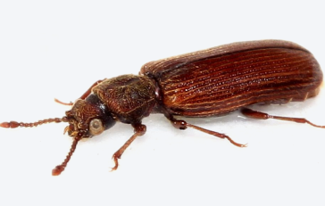 • Хлебный жук. Взрослые особи этого вида достигают длины до 3,8 мм. У них есть слегка вытянутое тельце, короткие усики, и они внешне напоминают табачного жука.